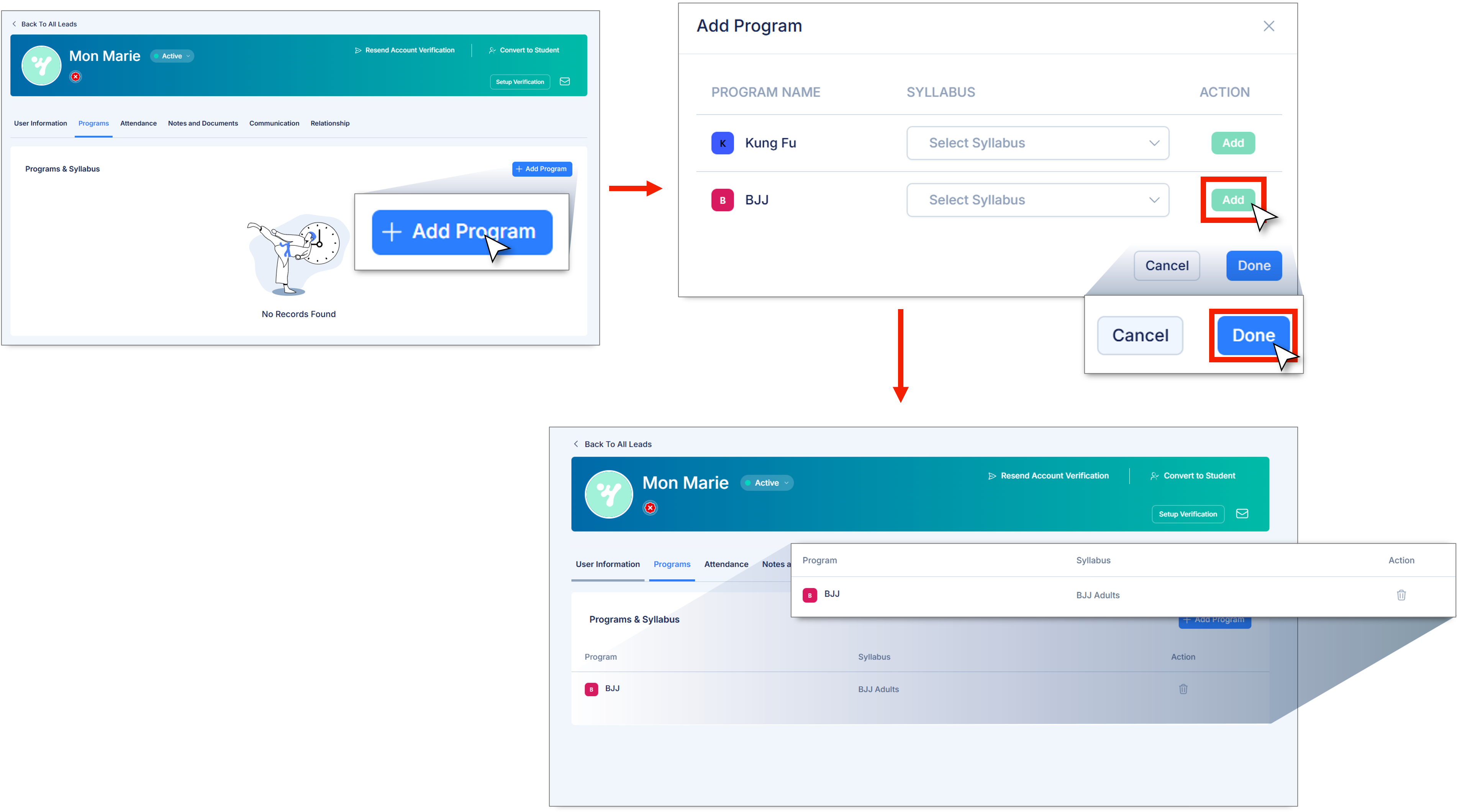 Once you have added a lead, you will need to assign a syllabus to them so they can check in to classes.