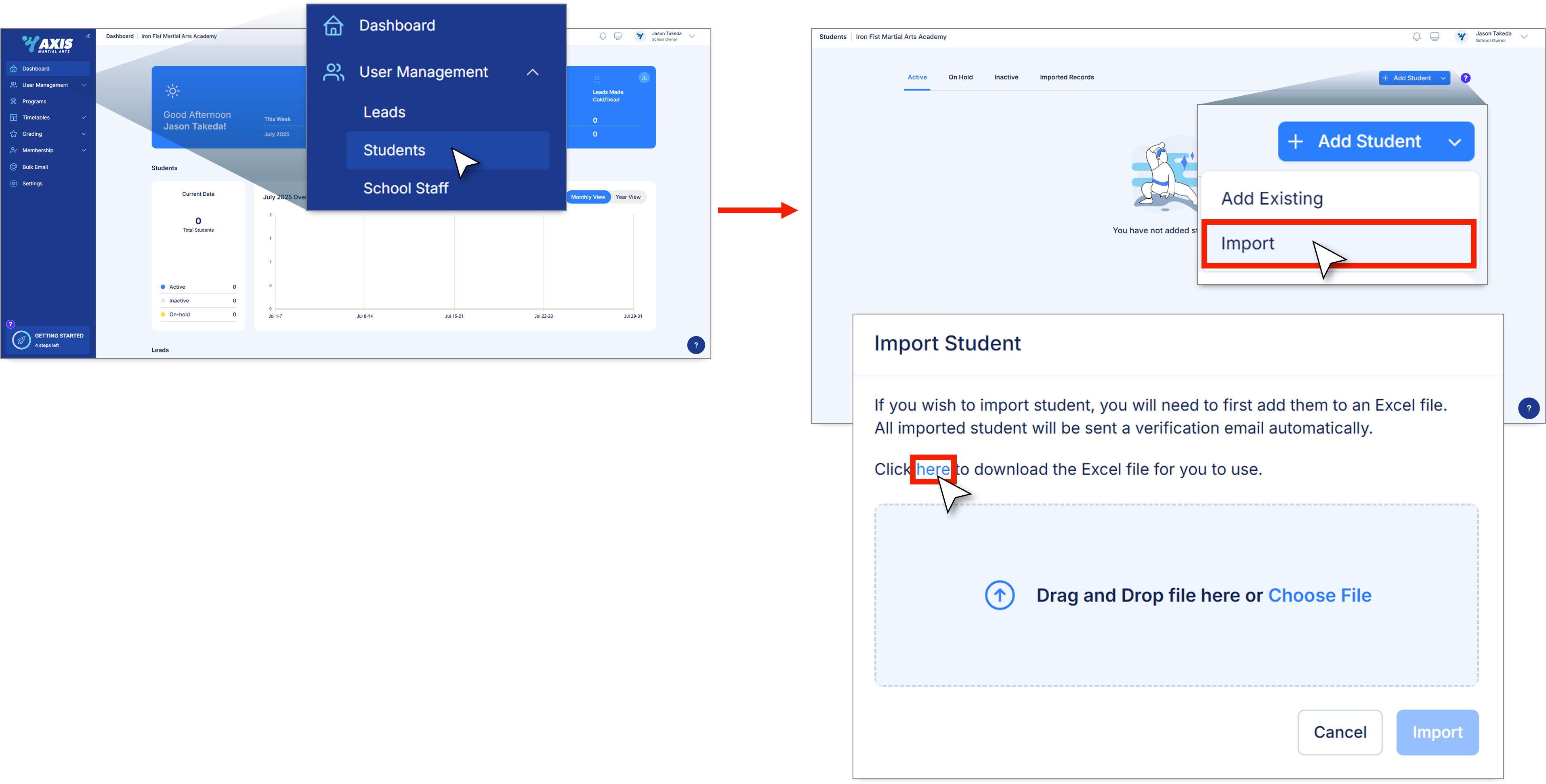 If you have a batch of students or leads you wish to import quickly, you can do this using the bulk feature.