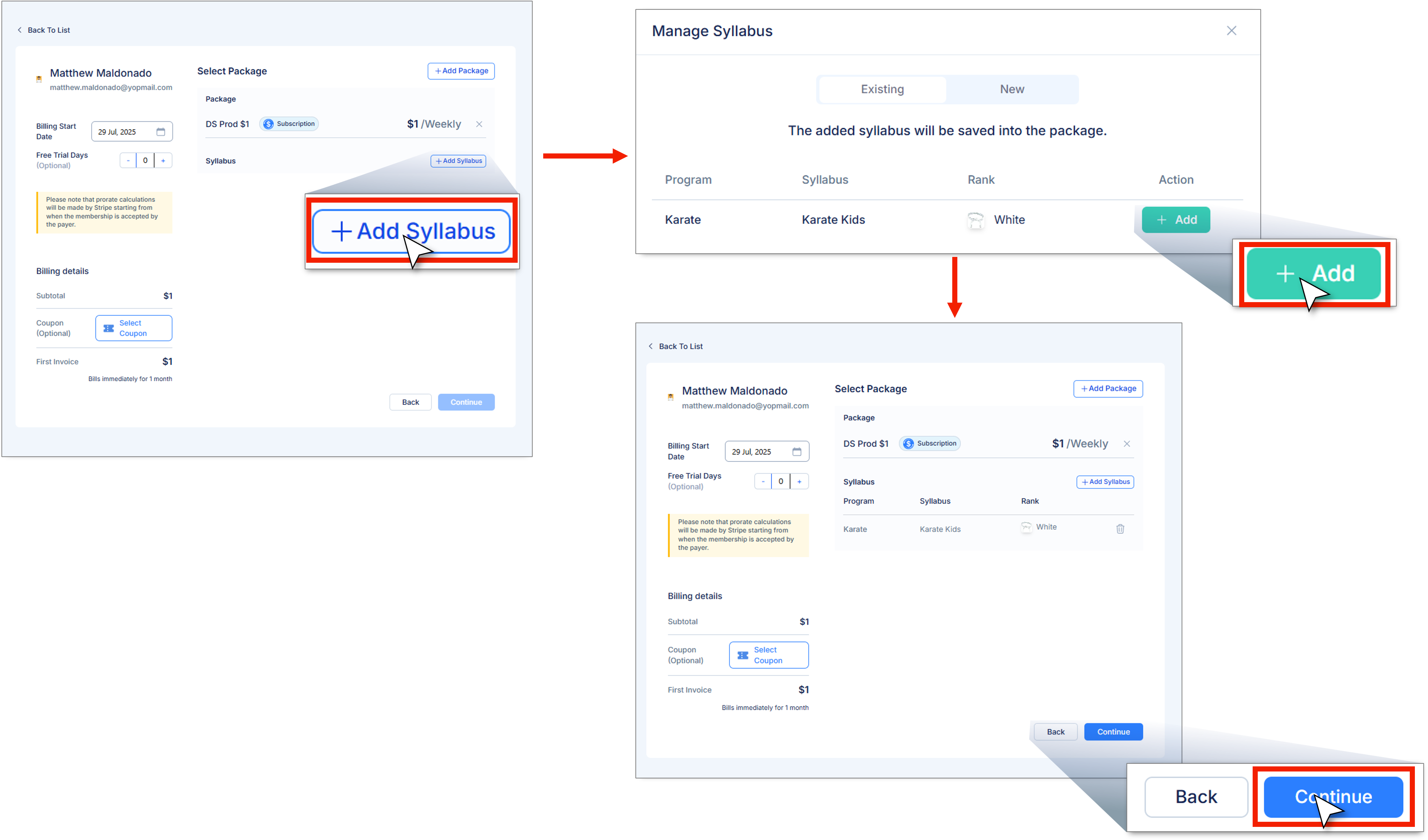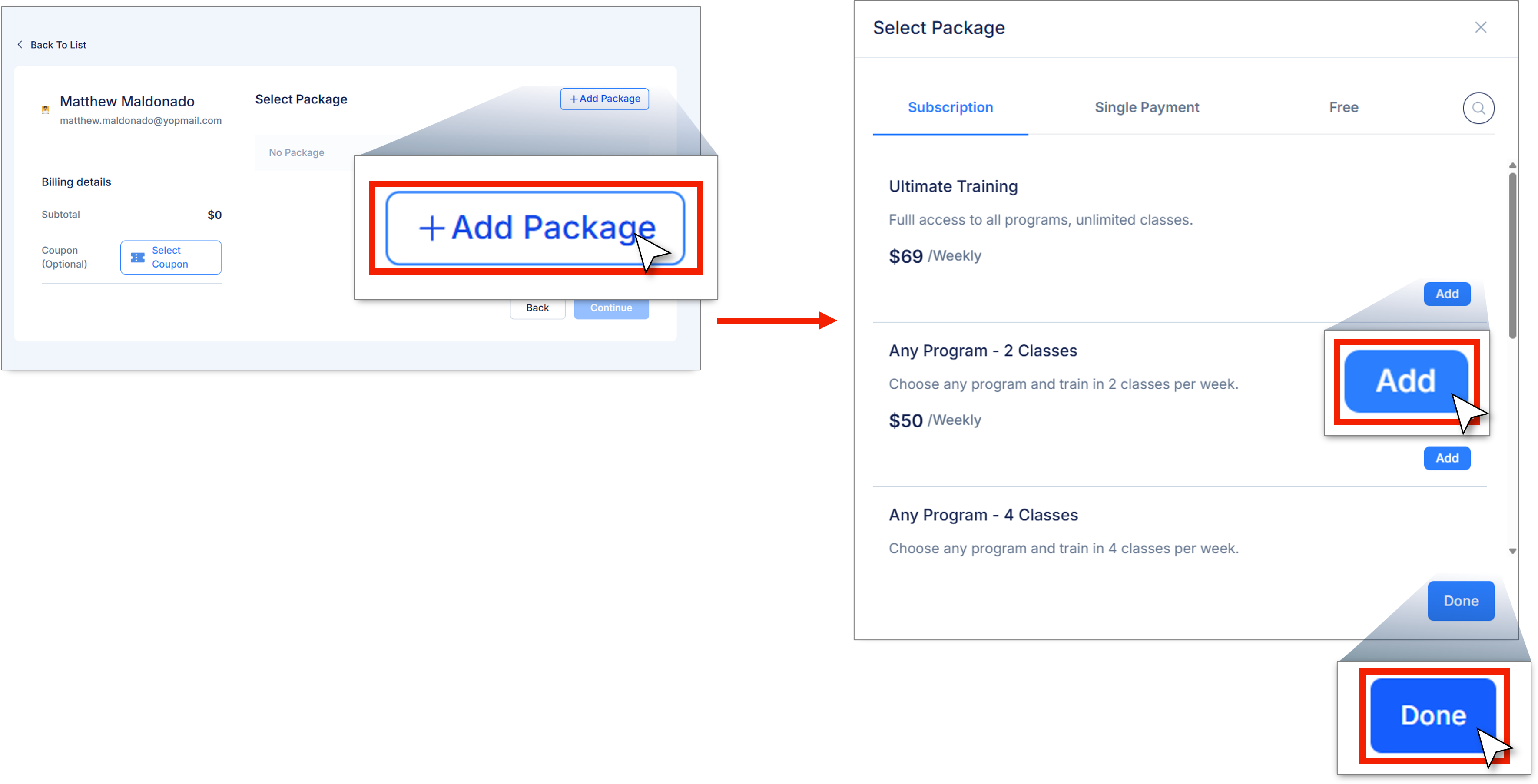Note: You can choose subscription, single payment, or free packages. All selected packages must have the same frequency (e.g. Weekly or Monthly).
