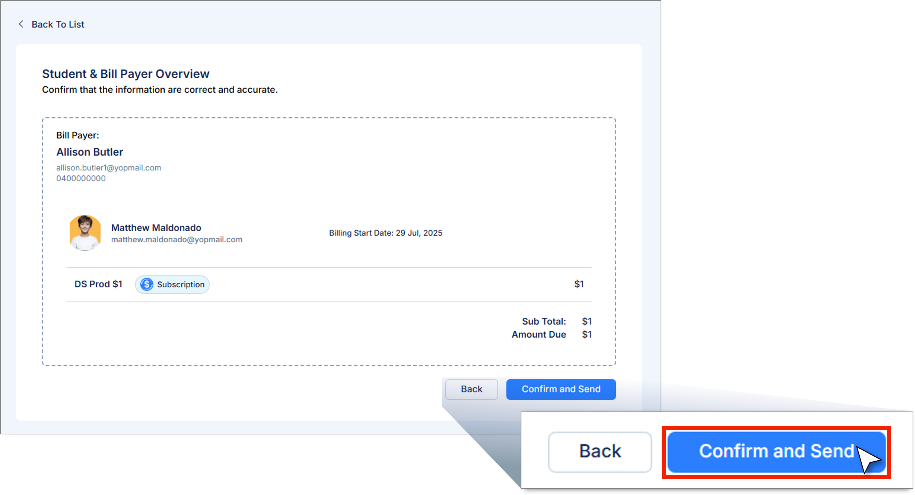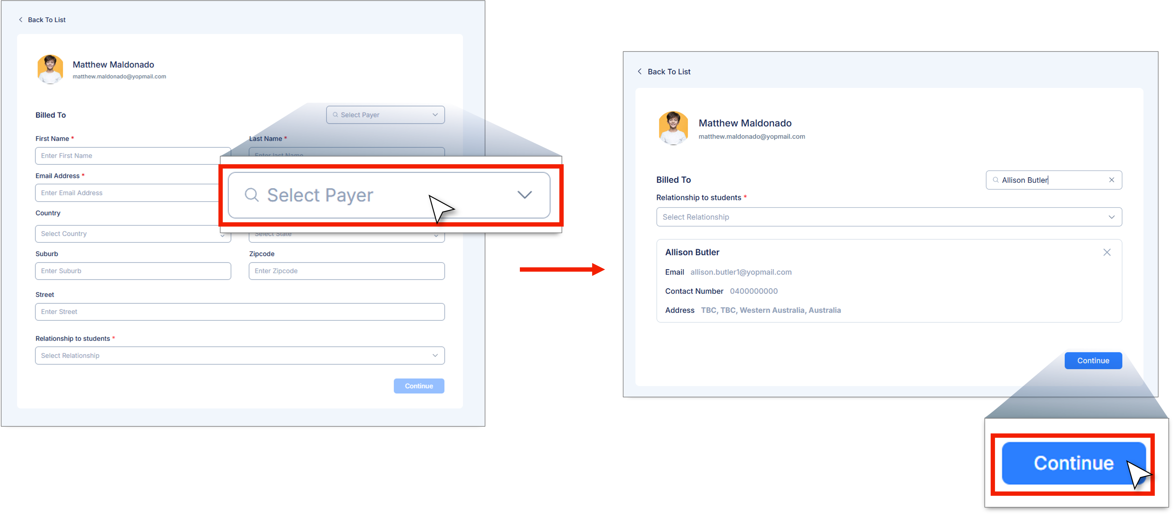 Note: The bill payer will be sent the membership to complete and enter their payment details via their email.