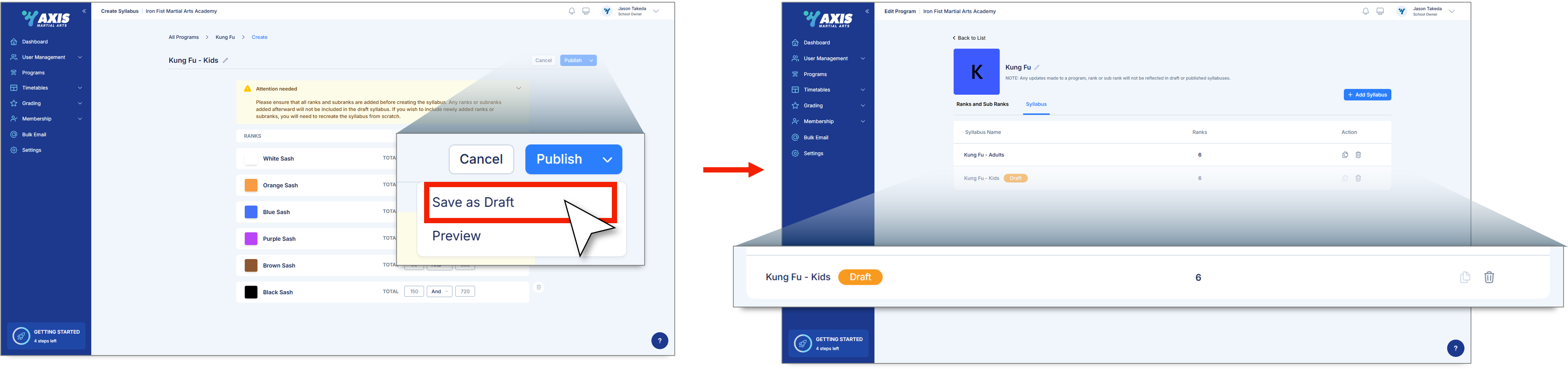 Note: You can also choose to save the syllabus as draft and return to complete it later.