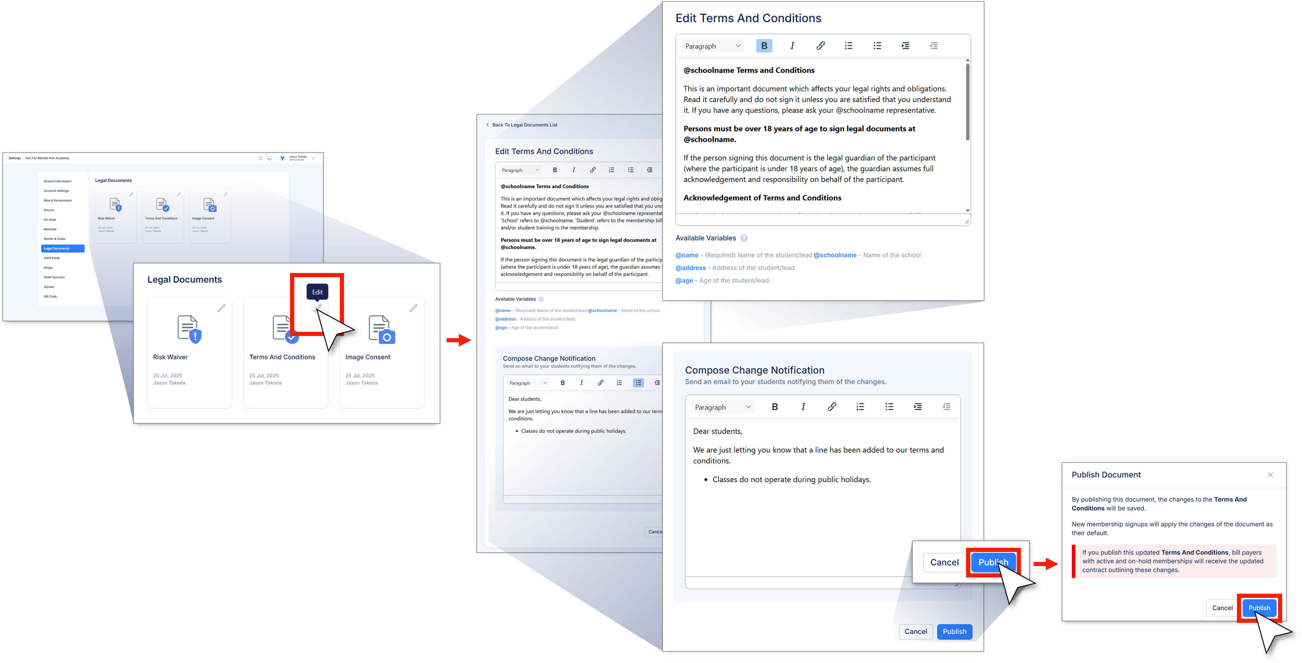 If you make any changes, users who have previously signed will not need to sign again, simply compose the change notification and they will be automatically notified by email, they will also be able to download the updated document from the email.