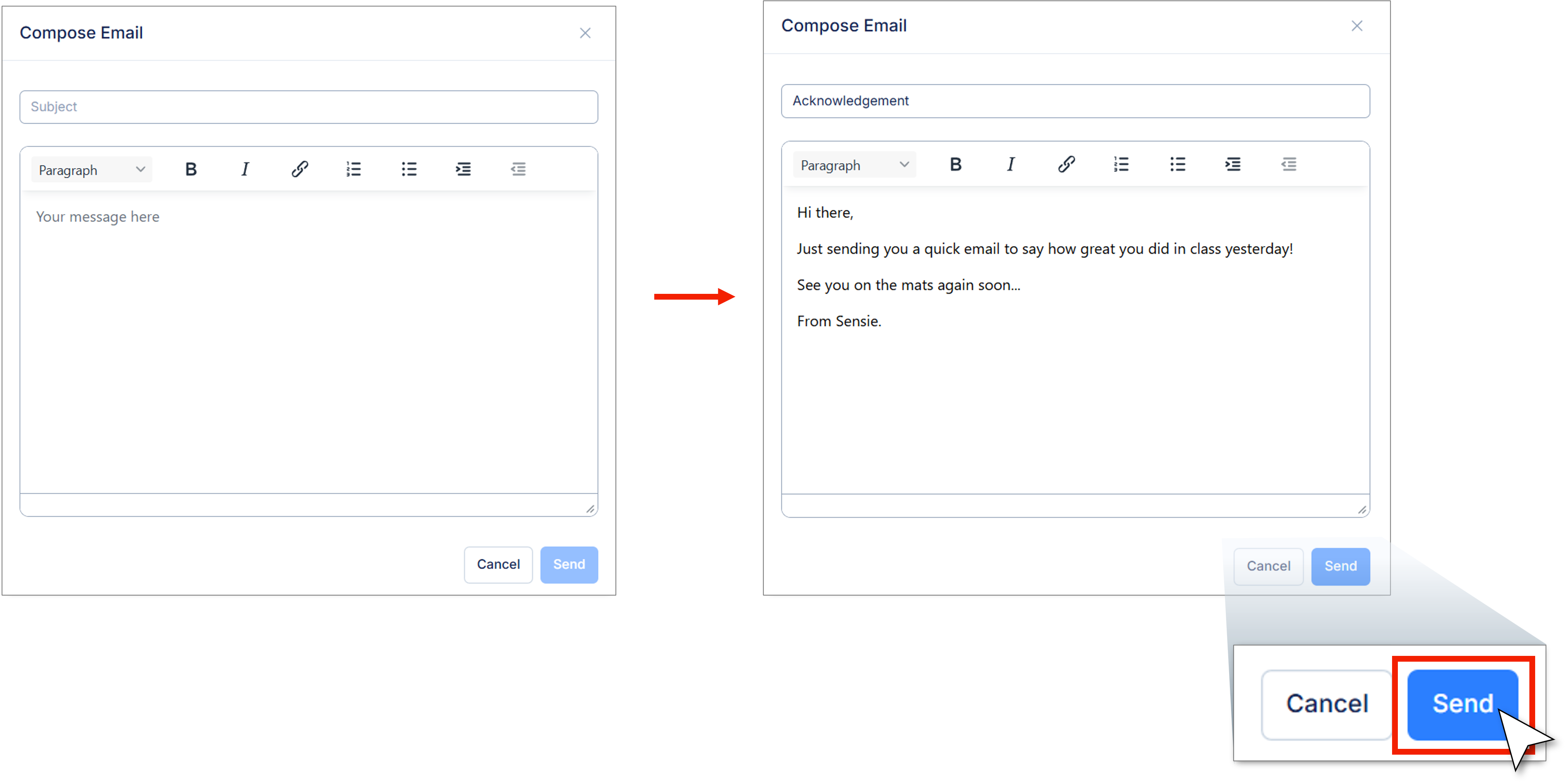 5. Click send to deliver the email.