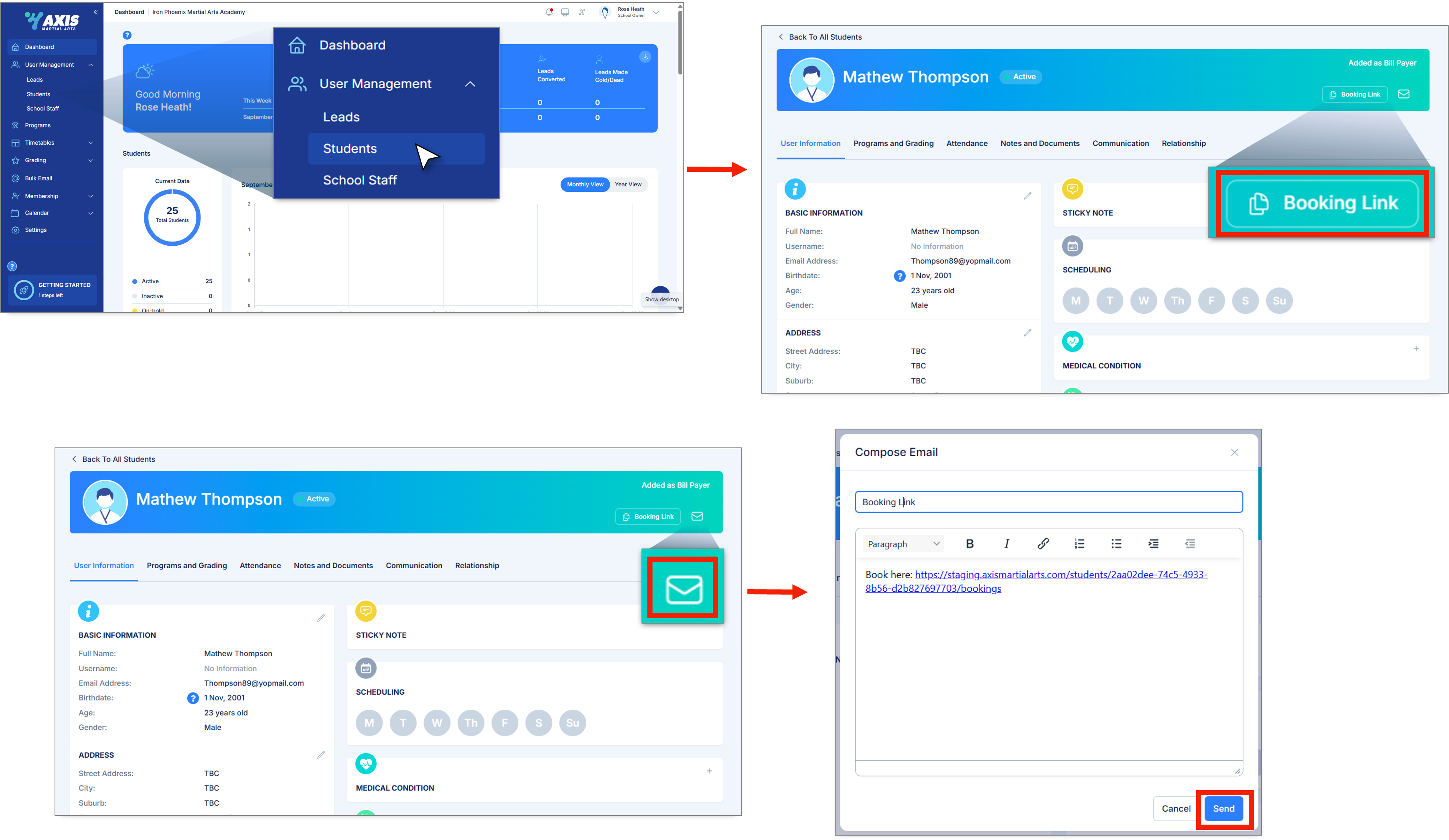 Note: Each student will have a unique booking link that you can send them, so they can book themselves into your classes.