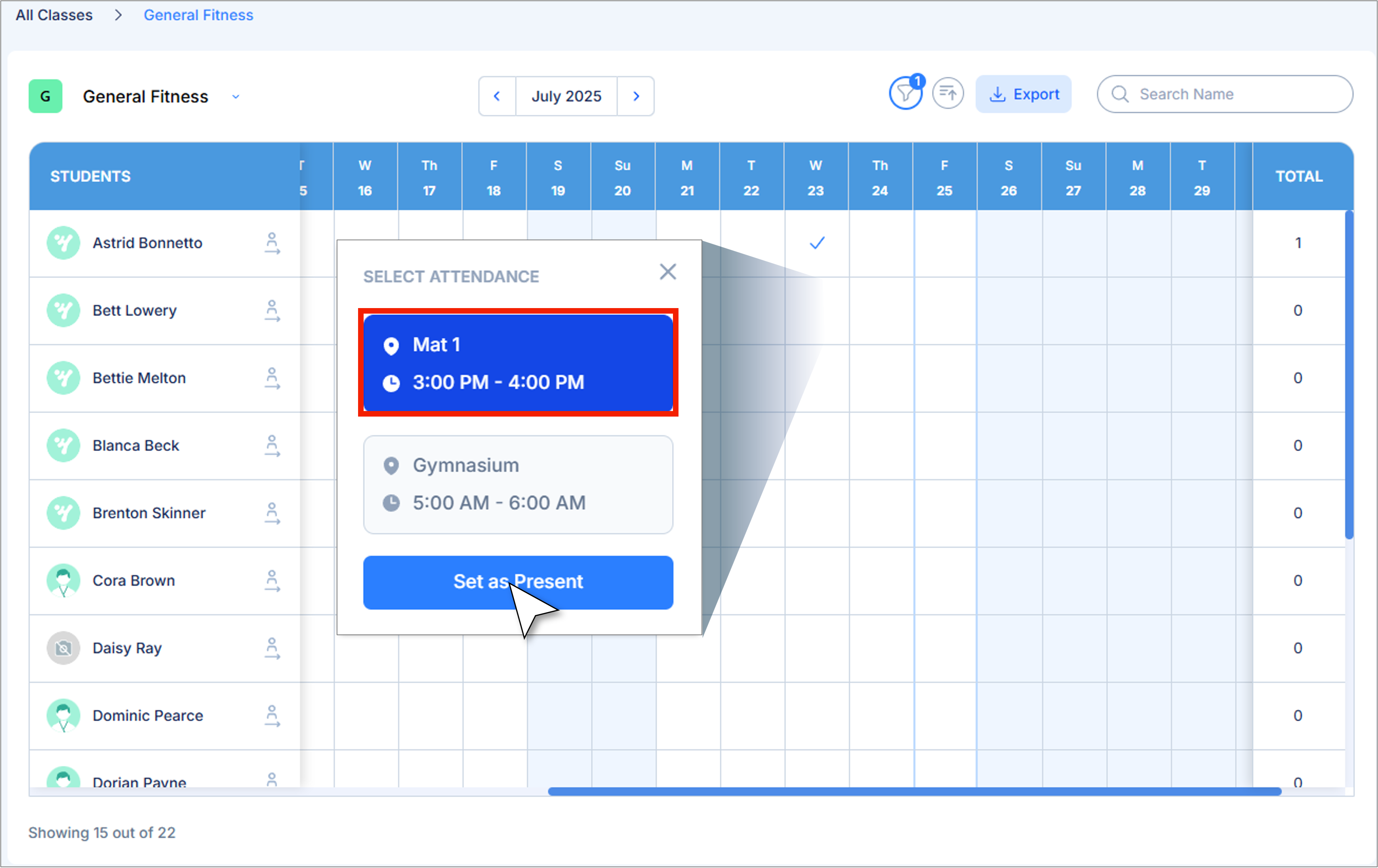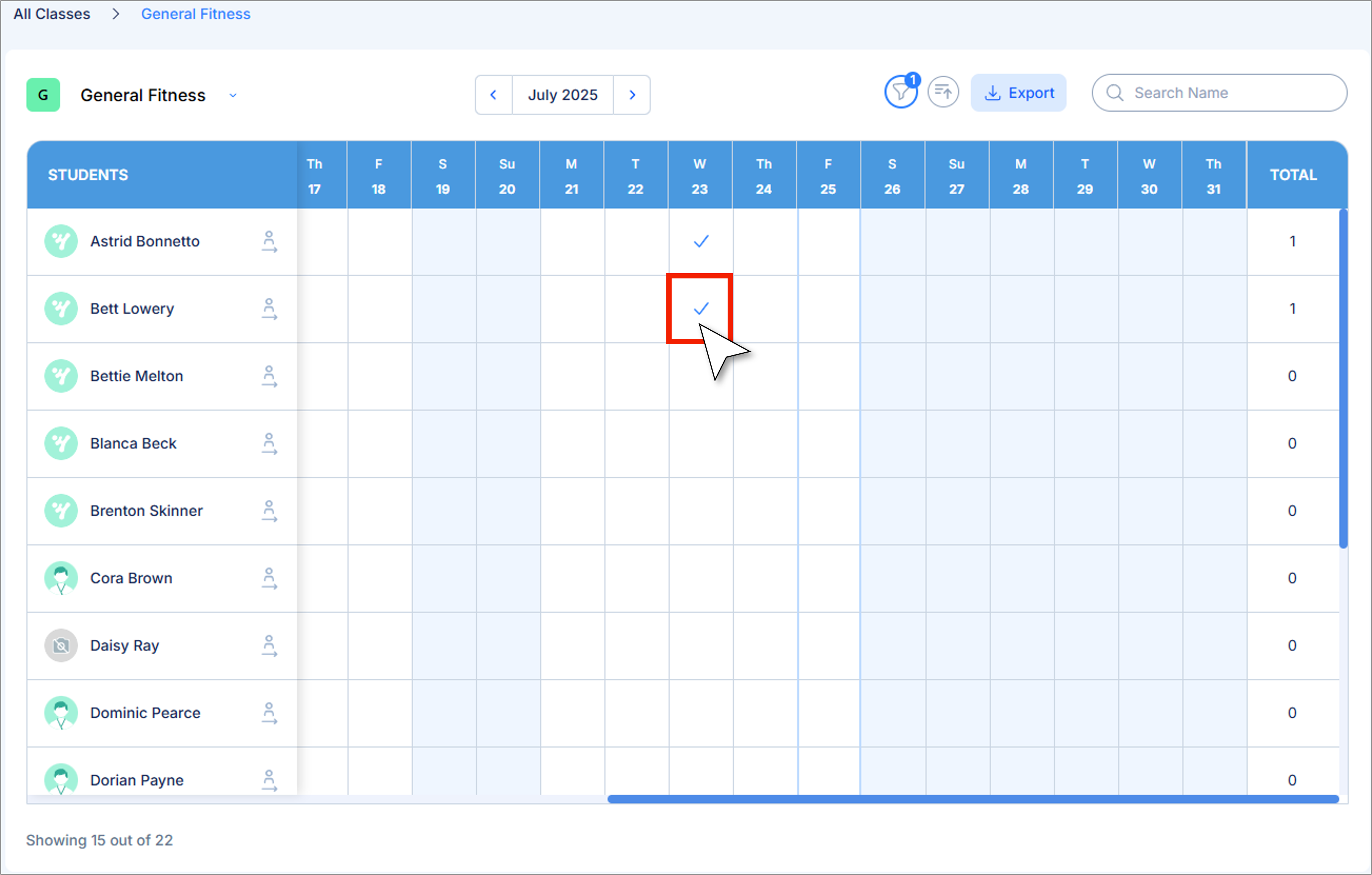 Easily monitor and manage your lead and student attendance records with our built-in class attendance tools. This guide walks you through how to view, mark, and update attendance for your classes.