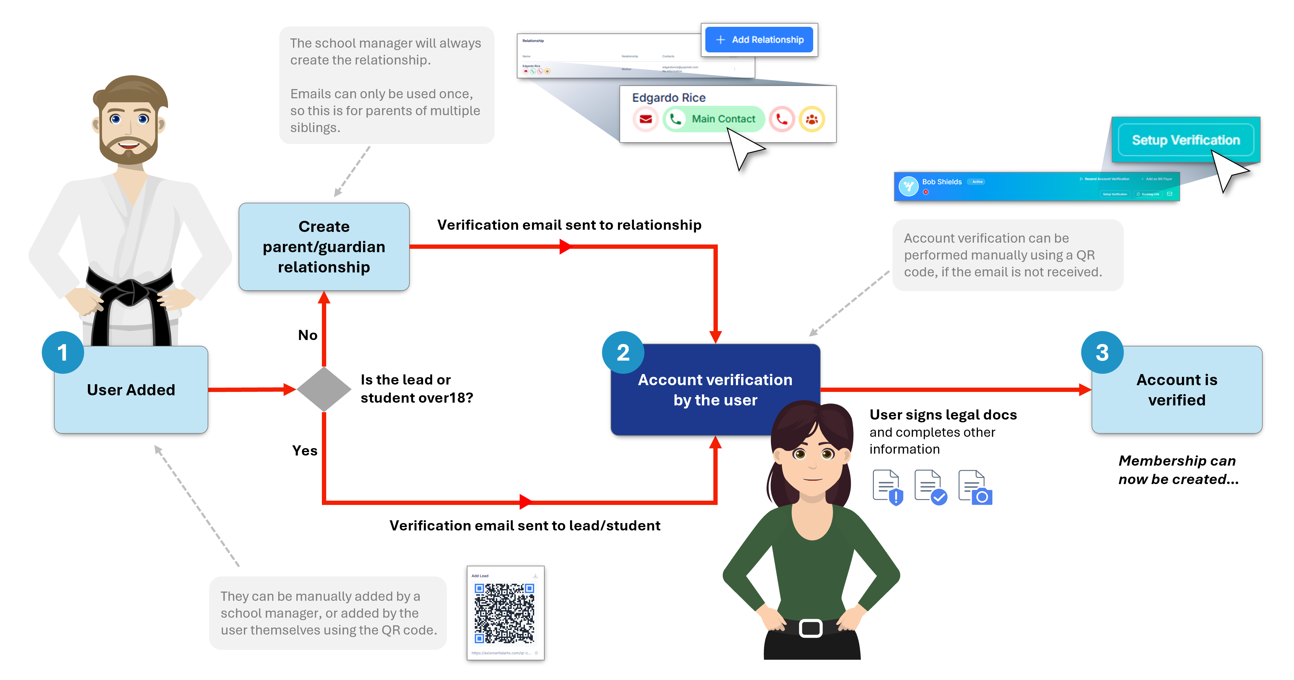 Note: You can go all the way through to creating a membership before a user account is verified, but students will not be able to check in to a class until they verify their account as the legal documents need to be signed.