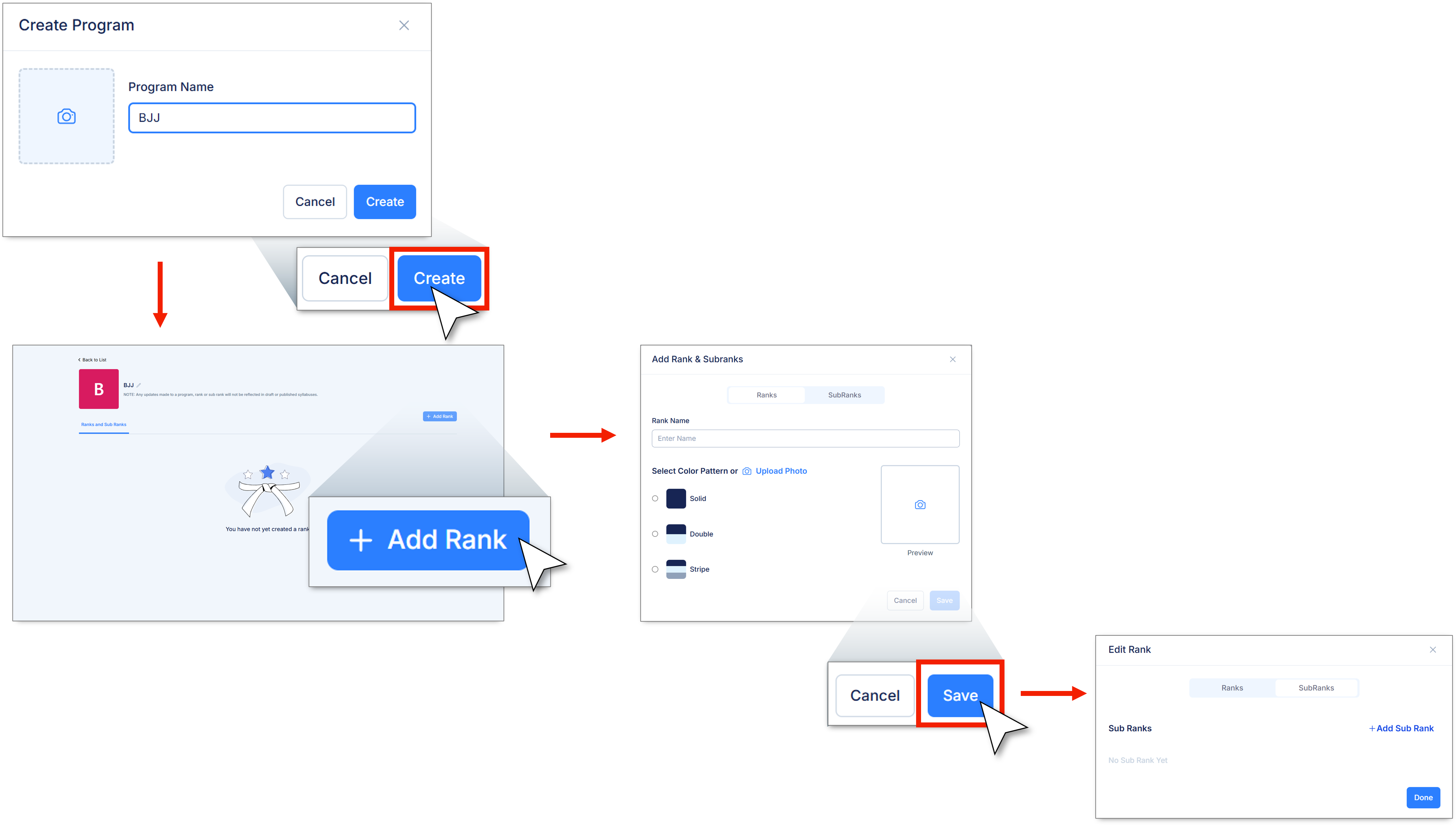 Refer to the help article "Creating a Program" so see how to create a program, ready to add ranks and sub ranks.