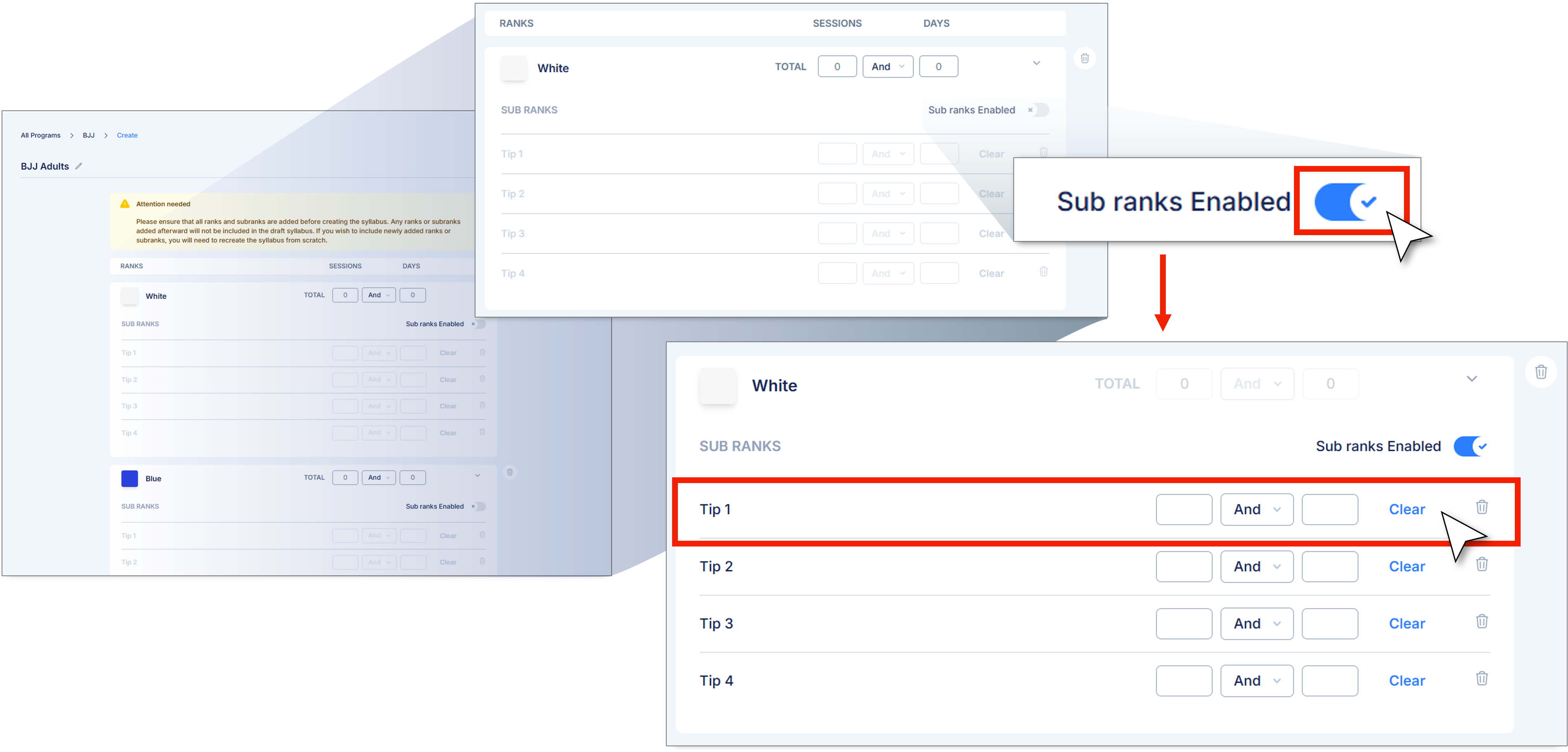 Note: When working with sub ranks, you'll need to enable them in order to assign specific sessions and days.
